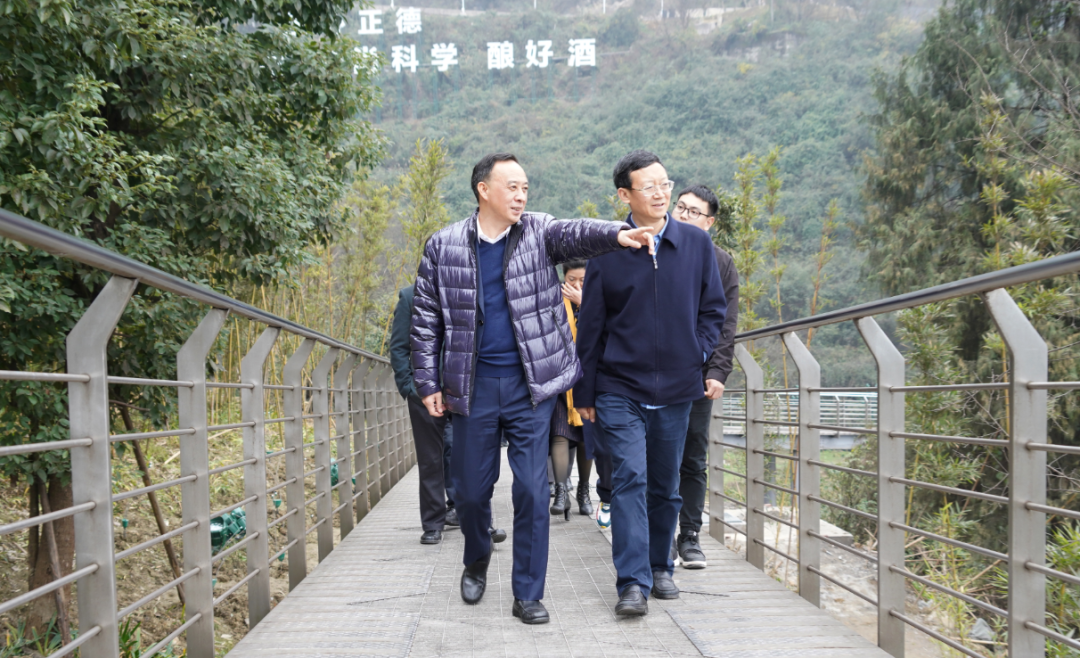 ▲钟方达董事长一行考察郎酒吴家沟生态酿酒区酿造车间