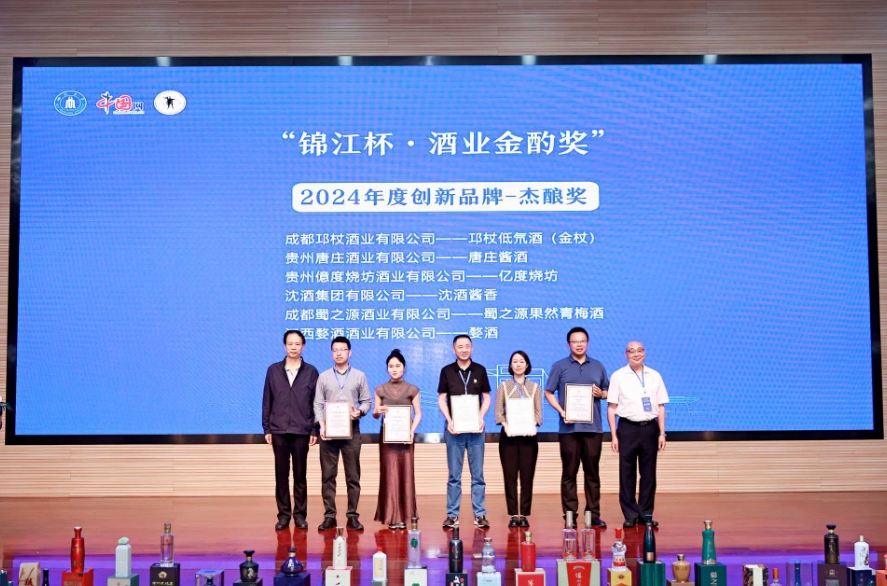 其中,中道华普设计集团、四川华宇瑞得科技获“2024年度酒业卓越成就奖”;金六福·熊猫酒、白金酒(金坛)、大梁茗酒、湘山老酒、源窝子老酒获评“2024年度影响力品牌”;杜甫文化酒、阳明悟道酒、故宫贡酒等六款产品获评“2024年度文化名酒”;龍洄庄园、大梁酒庄、中国沈酒庄等15家酒庄获评“2024年度唯美酒庄”;唐庄酱酒、金喜来·酒谷窖藏、大梁茗酒·茗媛等数十款产品分别获评“2024年度创新品牌-杰酿奖/佳酿奖/善酿奖”。