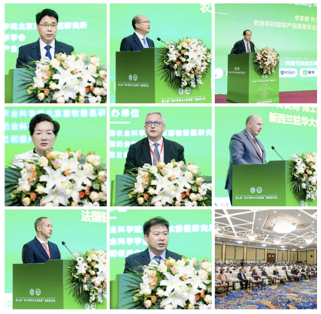 中国农业科学院党组书记杨振海、农业农村部畜牧兽医局副局长王健、农业农村部农产品质量安全监管司二级巡视员李家健、中国奶业协会秘书长刘亚清、美国奶业科学学会副主席David Everett、新西兰驻华大使Jonathan Austin和法国驻华大使馆农业参赞Jo Cadihon出席会议开幕式并致辞。中国农业科学院北京畜牧兽医研究所所长张军民主持会议开幕式。