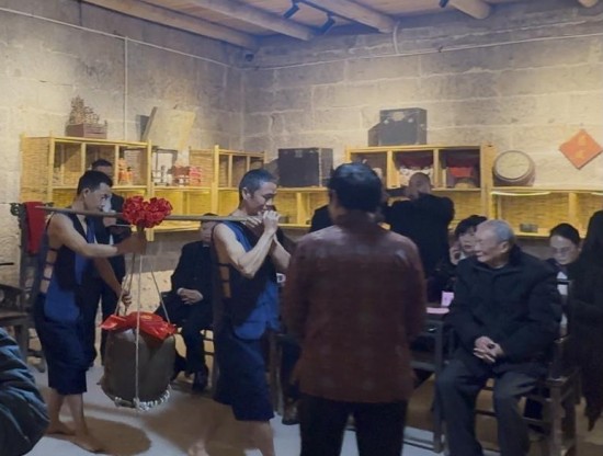 仪式的最后环节是两位身着传统服饰的酿酒工匠抬上一坛由梁怀清大师亲自勾调的佳酿,由梁怀清大师亲手敬奉给李庭芳先生,以最能表达酿酒人情感的方式,感谢李庭芳先生当年亲自选定批准其师从范玉平先生学习勾调的知遇之恩、伯乐之情。