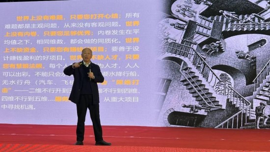 世界上没有难题,只要您打开心结;所有难题都是主观问题,从来没有客观问题。世界上没有内卷,只要您足够优秀;内卷发生在平均值之下,相同维数,都会做的同质化。世界上不缺资金,只要您有赚钱的项目;要善于设计赚钱盈利的好项目。世界上不缺人才,只要您有慧眼法眼,每个人都可以成为人才,人人可以出彩。不能只会水涨船高,而要水降行船,无水行舟。学会“降维打击”——二维不行升到三维、三维不行到四维、四维不行到五维….服务国家战略,从重大项目中寻找机遇。