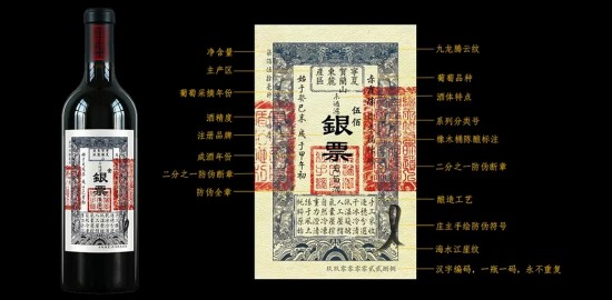 赵海介绍,在设计酒标时,也想要做到与众不同。银票酒庄推出“银票”这样一个大孤品,就是想让它成为独一无二的一个产品。酒标融合了中国传统文化的元素,兼具“书法美、绘画美、印章美”,而银票是明清时期流通的货币,在一定历史阶段,象征社会财富,极大的促进了当时商业经济的发展。